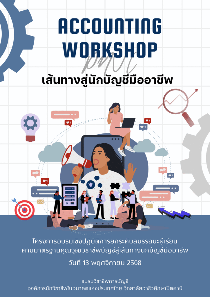 👉🏻เชิญชวนนักเรียน นักศึกษา สาขาวิชาการบัญชี และผู้ที่สนใจเข้าร่วมโครงการอบรมเชิงปฏิบัติการ “ยกระดับสมรรถนะผู้เรียนตามมาตรฐานคุณวุฒิวิชาชีพบัญชีสู่เส้นทางนักบัญชีมืออาชีพ”